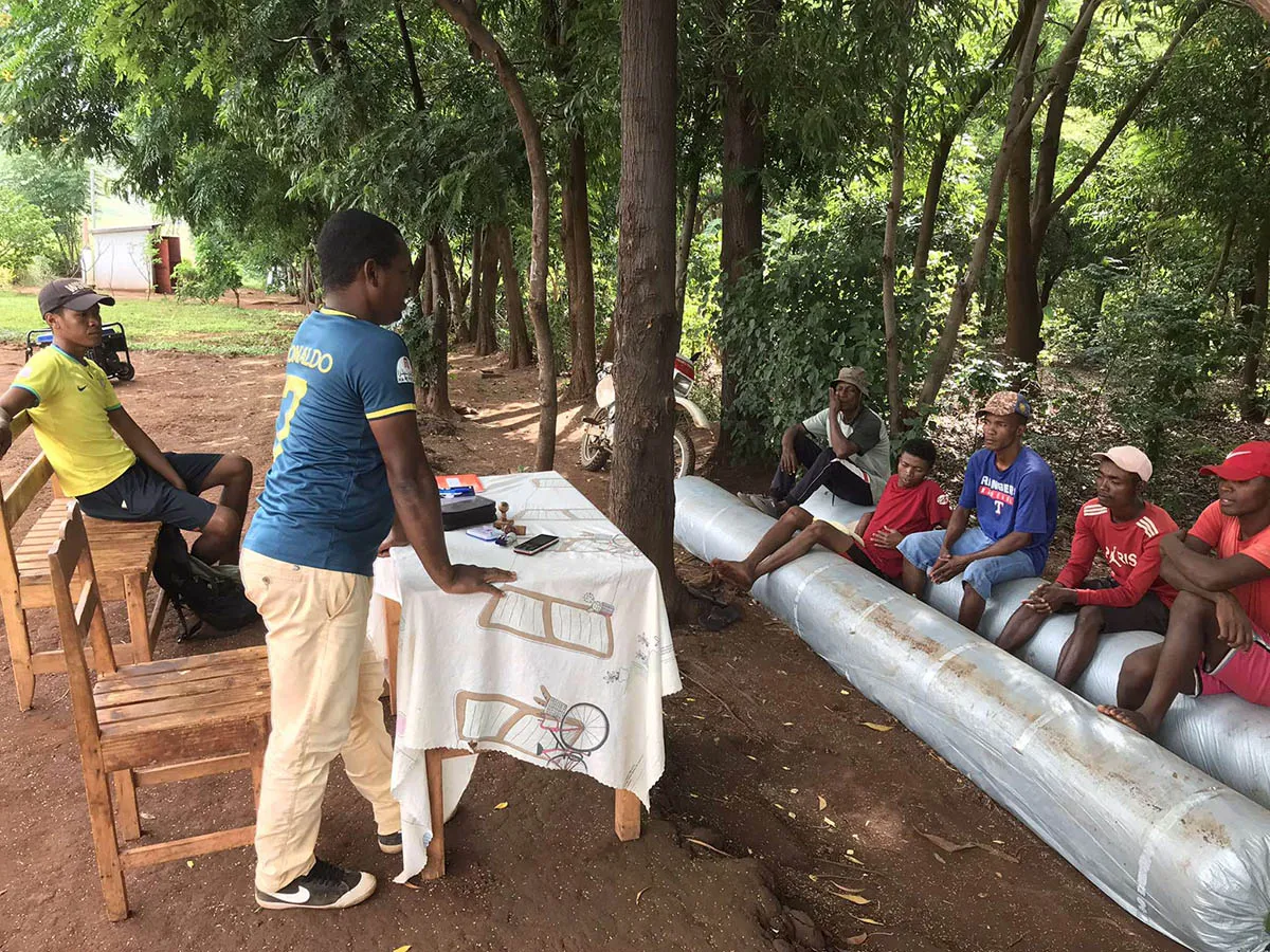 Nous accompagnons nos équipes dans l’apprentissage de techniques agricoles durables qui protègent la biodiversité d’Ambodimanga sur le long terme.